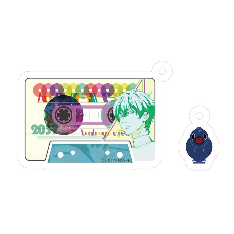 カセットテープデザインのアクリルキーホルダー。