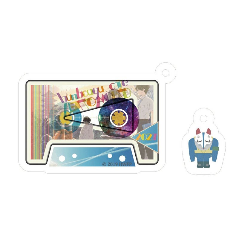 カセットテープデザインのアクリルキーホルダー。