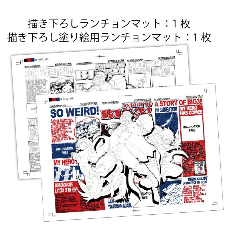 カフェ利用でお配りしていた「描き下ろし波動ランチョンマット」と、 さらにお家で塗り絵が楽しめる「描き下ろし波動塗り絵用ランチョンマット」の合計2枚