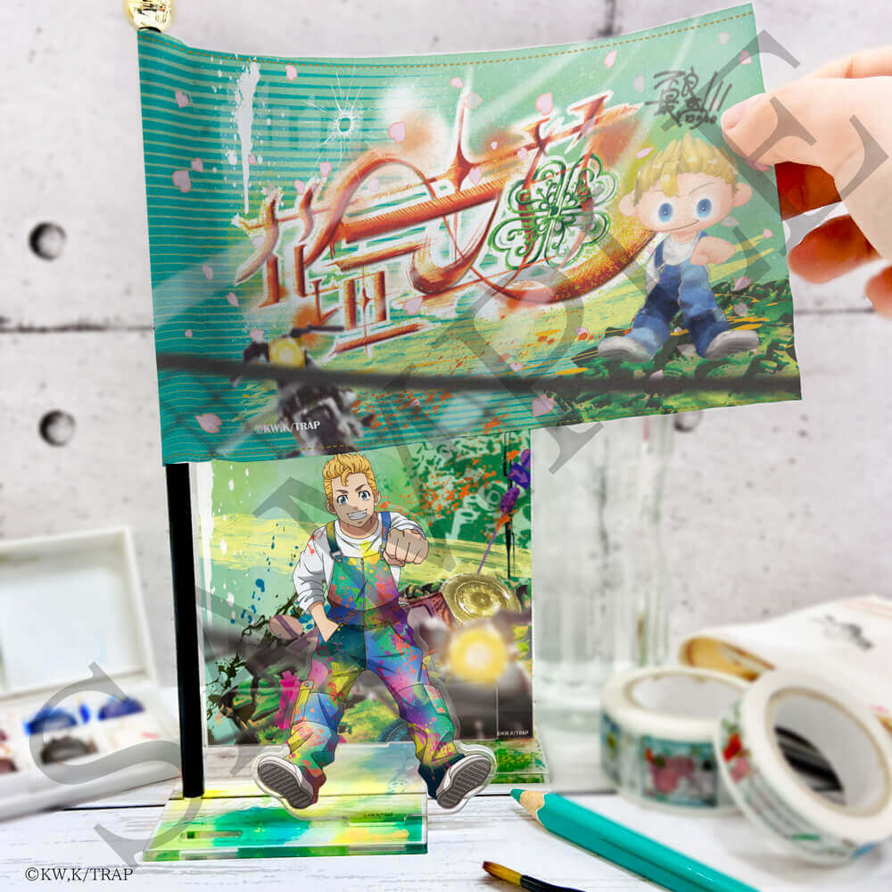 別売りのアクスタにはミニフラッグを立てる穴があるので、