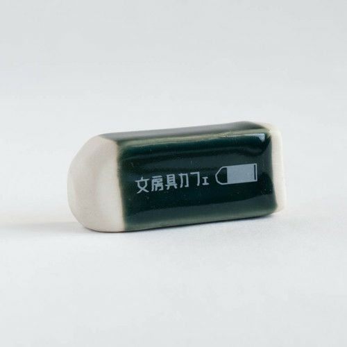 文房具カフェ ロゴ入り箸置き(消しゴム型) 緑